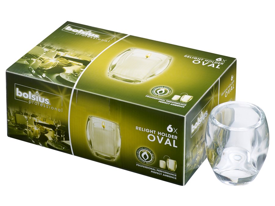 Houder tbv de Refill / Relight kaarsen, Oval transparant incl vulling, Ø 100 x 84 mm, 2 x 6 stuks per doos.