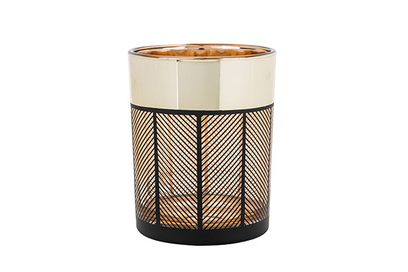 Houder tbv de Refills / Relightkaarsen, Luxery glass goud zwart D 10 x H 13 cm, 2 stuks