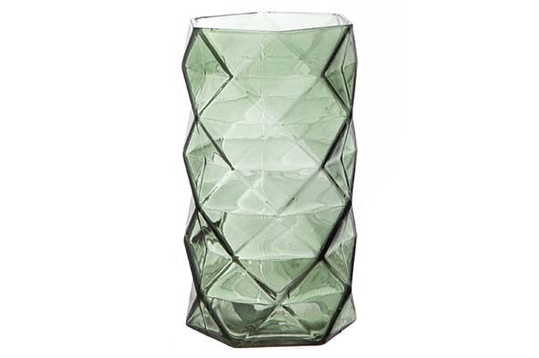 T-lichth geometrische groen 8X8X11cm glas, 12 stuks per doos