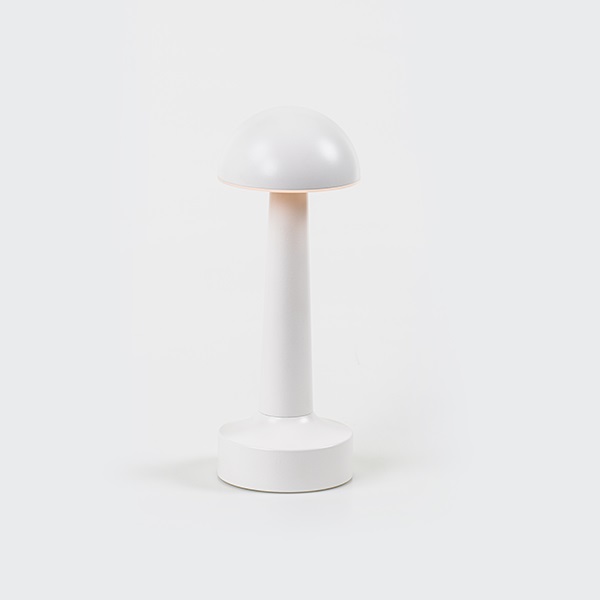 Deze draadloze tafellamp heeft een breed steelbasisontwerp, eenvoudige structuur, met een eigentijdse koepelkap en afgeschuinde basis.’