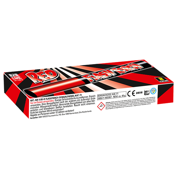 Flash Torch, schitterende stadionfakkels in de kleur rood. Per 2 stuks in een doosje.