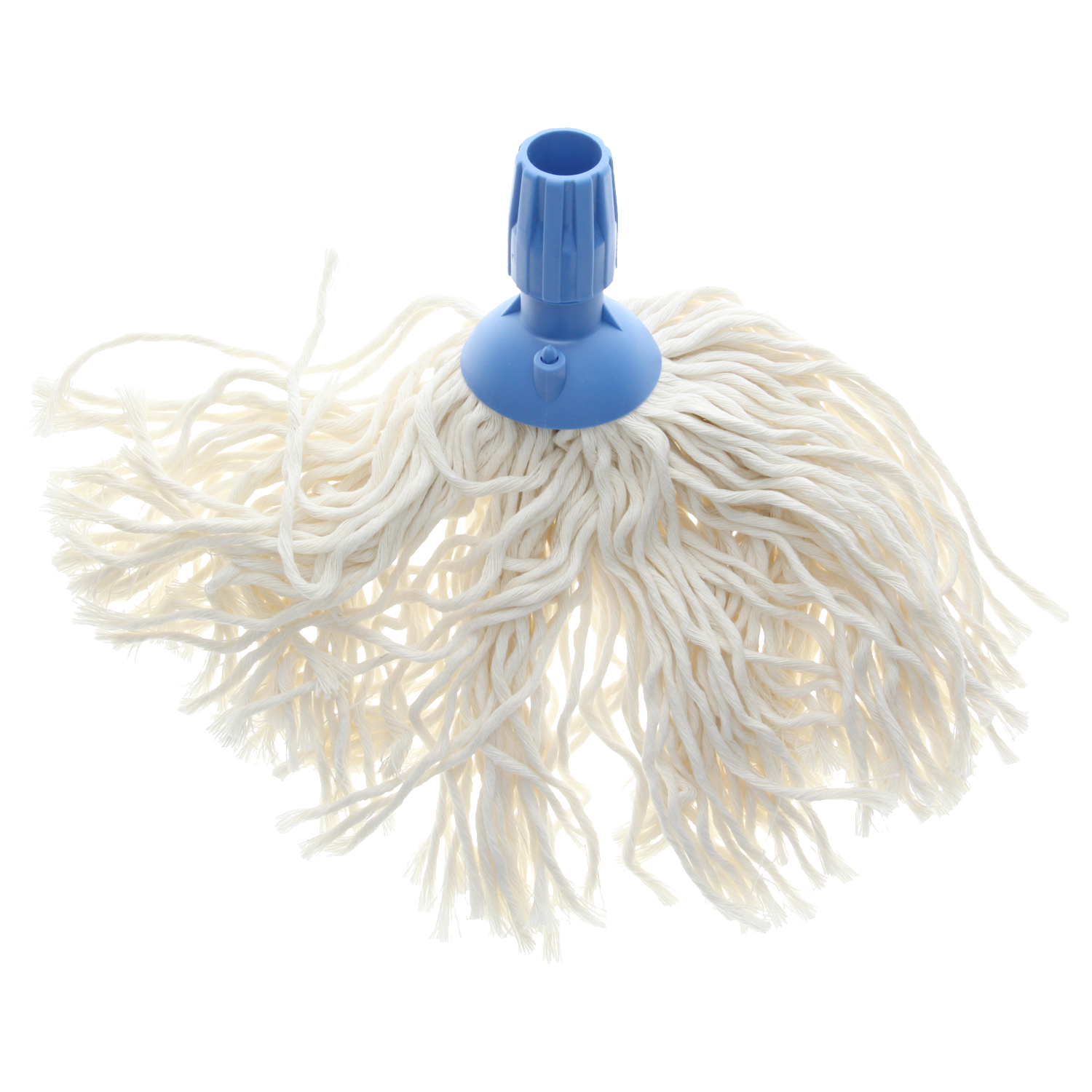 Minimop met schroefdraad katoen 150 gram met blauwe kunststof universele stokhouder.
