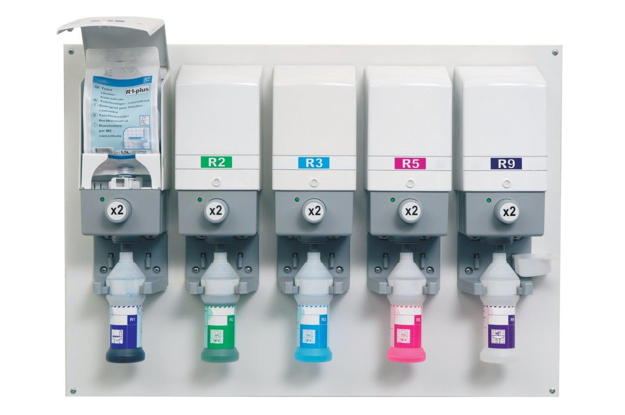 Suma Star plus D1 plus is supplied in flexible, environmental 1.5L plastic pouches designed to fit into the Divermite Plus or Diverflow with Surelink dispenser from Diversey.