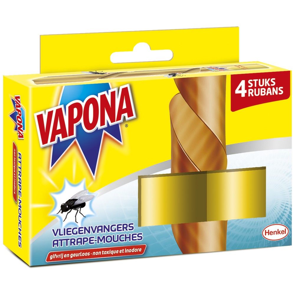 Dankzij deze vliegenvangers van Vapona heeft u geen last meer van vliegen. De vier kleefstroken hebben een doeltreffende plaklaag waarin de vliegen verstrikt raken. De kleeflaag is gifvrij en geurloos, dus verder heeft u er geen last van. Hang de kleefstroken met een punaise op een plek waar een hoop vliegen zitten, zodat u geen last meer heeft van ze.