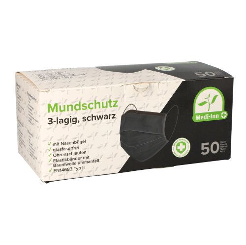 "Medi-Inn®" Mondkapje Type II, 3-laags 9 cm x 17,5 cm zwart met neusbeugel.