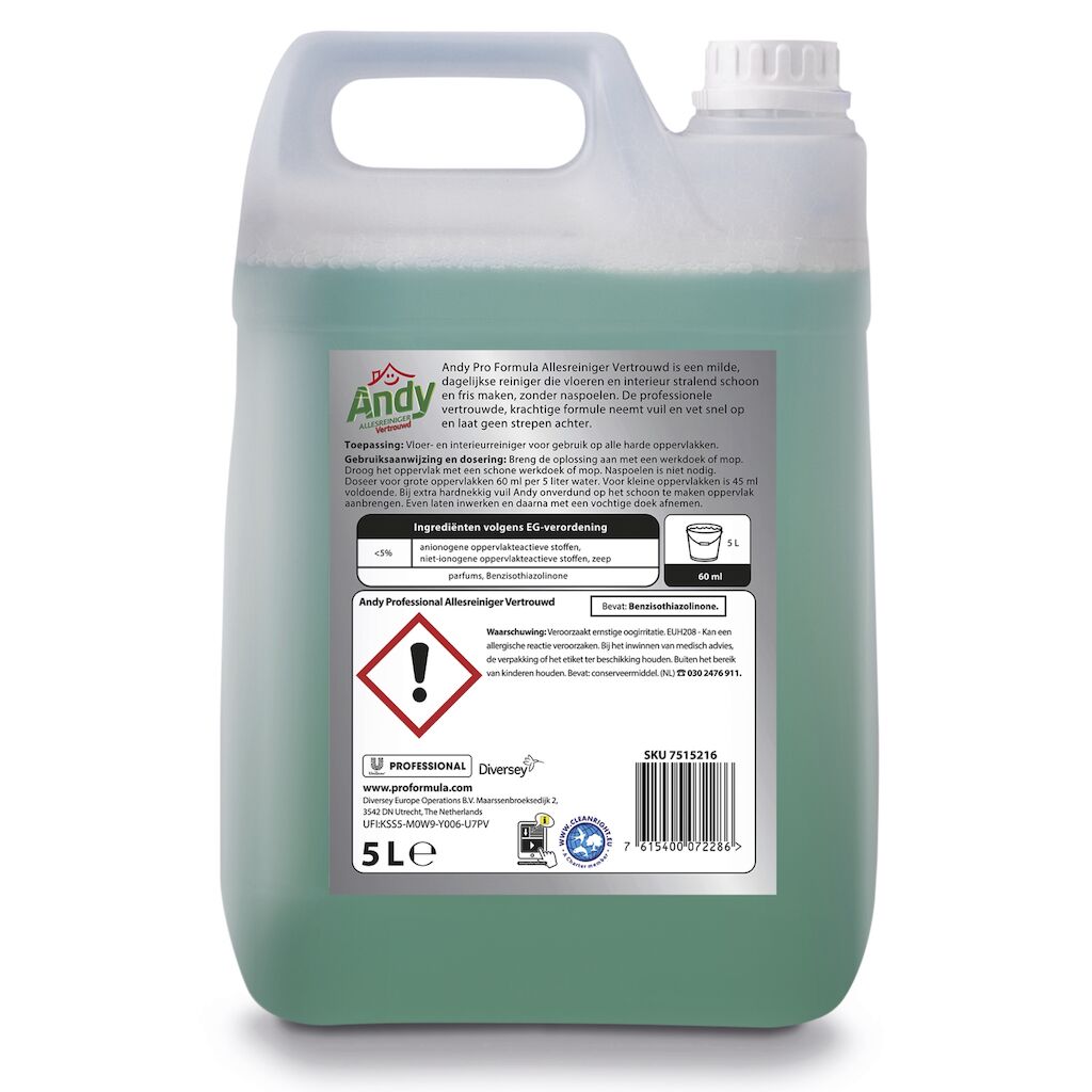Professionele allesreiniger voor dagelijks gebruik. De vertrouwde, krachtige Andy formule neemt vuil en vet snel op en laat geen strepen achter. Laat een frisse geur achter.