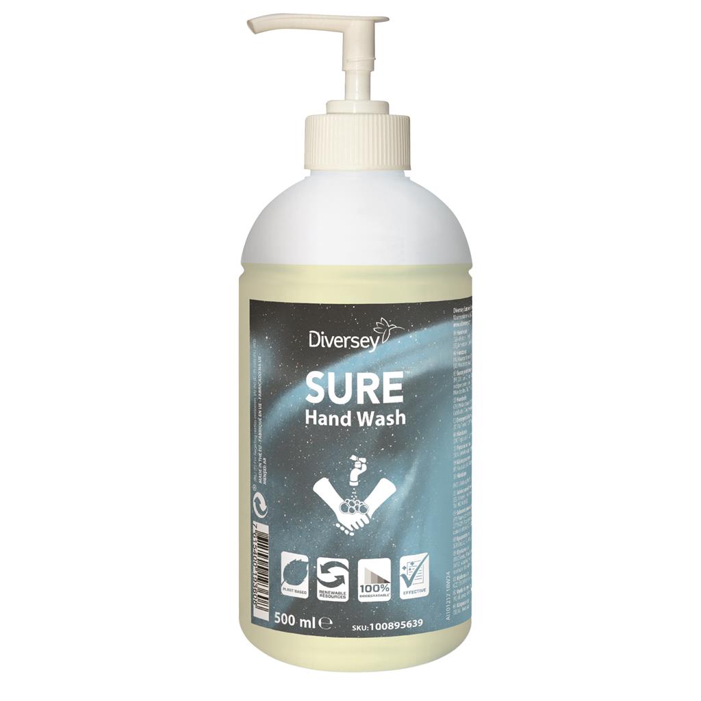 SURE Hand Wash is onderdeel van een uniek assortiment van plantaardige, 100% biologisch afbreekbare professionele reinigingsmiddelen voor alle dagelijkse reinigingsbehoeften en persoonlijke verzorging. SURE Hand Wash is een milde handzeep die reinigt en tegelijkertijd verzorgt. Het bevat een 100% natuurlijk citroenparfum en plantaardige ingrediënten waardoor het een weloverwogen keuze voor uw organisatie is. SURE Hand Wash is veilig in gebruik. Het product is biologisch afbreekbaar, bevat geen parabenen en is volledig niet-geclassificeerd.