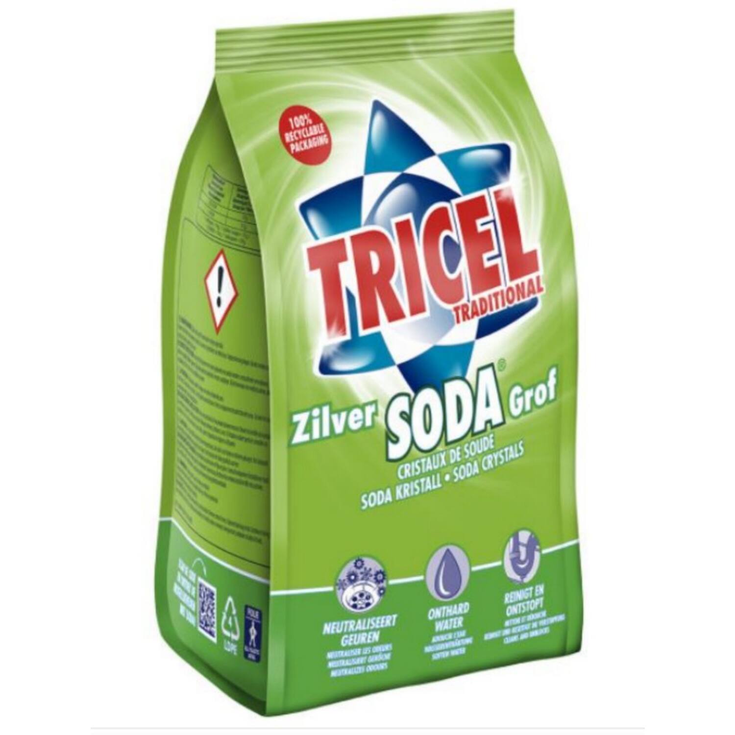 Soda, zilversoda fijn, tricel, pot 800 gram.