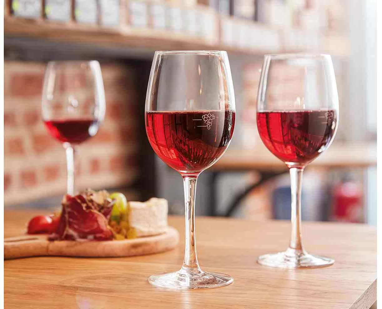 CABERNET WIJNGLAS 35CL SET6 MAATSTREEPJE DRUIFJE OP HET GLAS OP 10 12.5 EN 15 CL