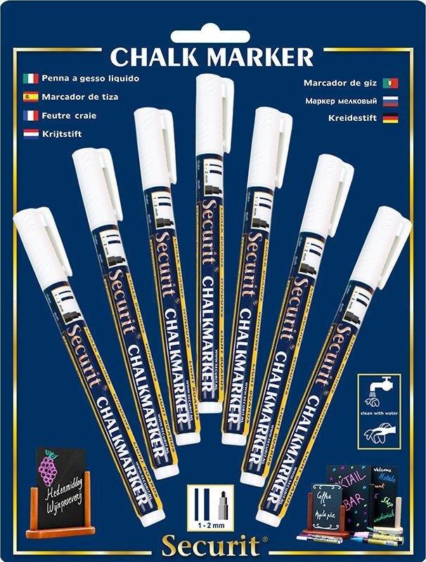 Krijtstift 1-2 mm fijn wit Liquid, securit, 7 stuks
