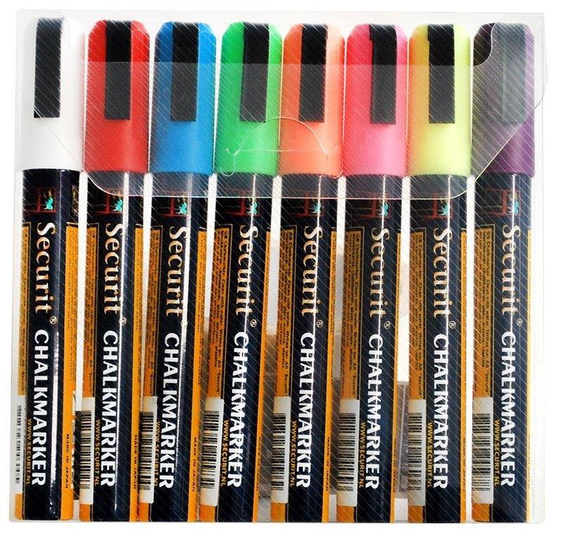 Krijtstift 2-6 mm middel assorti kleuren Liquid, securit, 8 stuks
