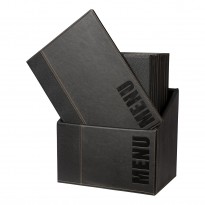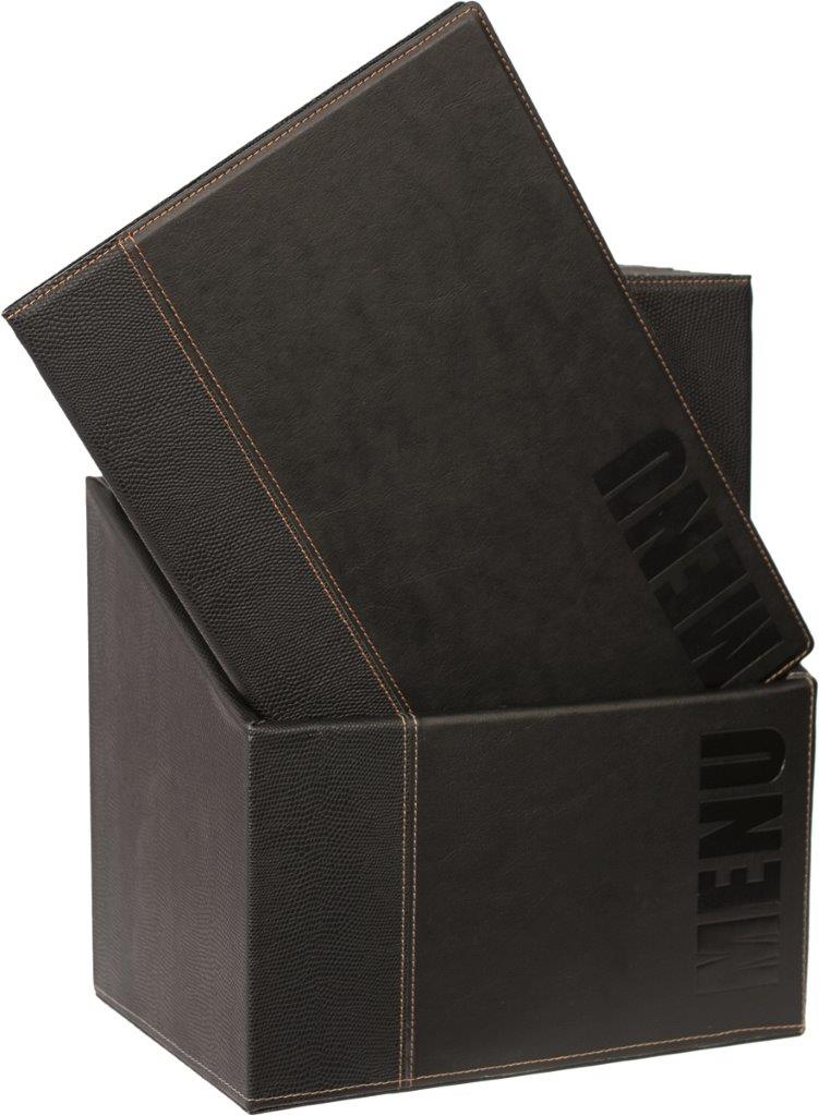Menukaartenset 20st incl houder modern zwart leer, 1 stuks