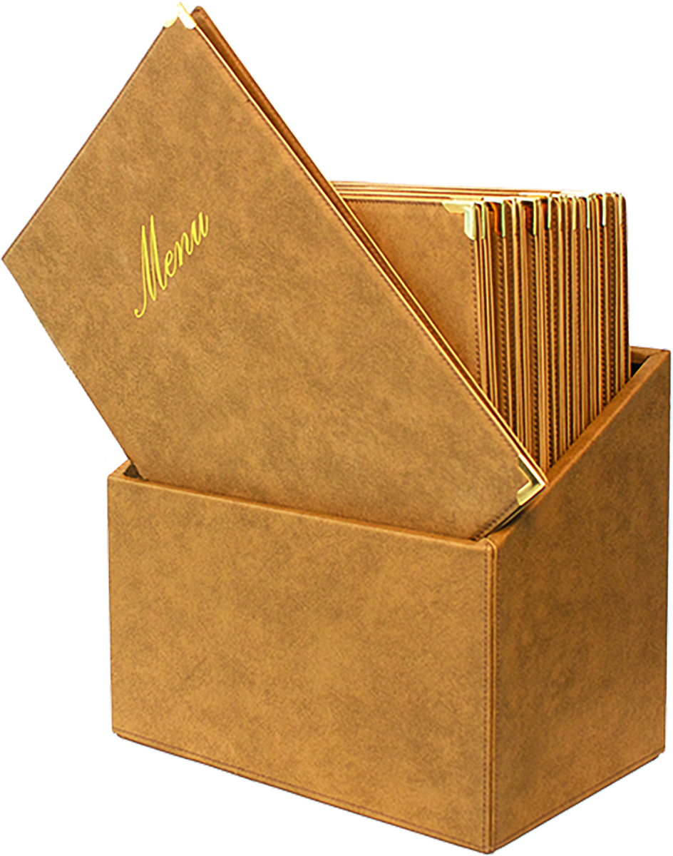 Menukaartenset 20st incl houder beige leer, 1 stuks