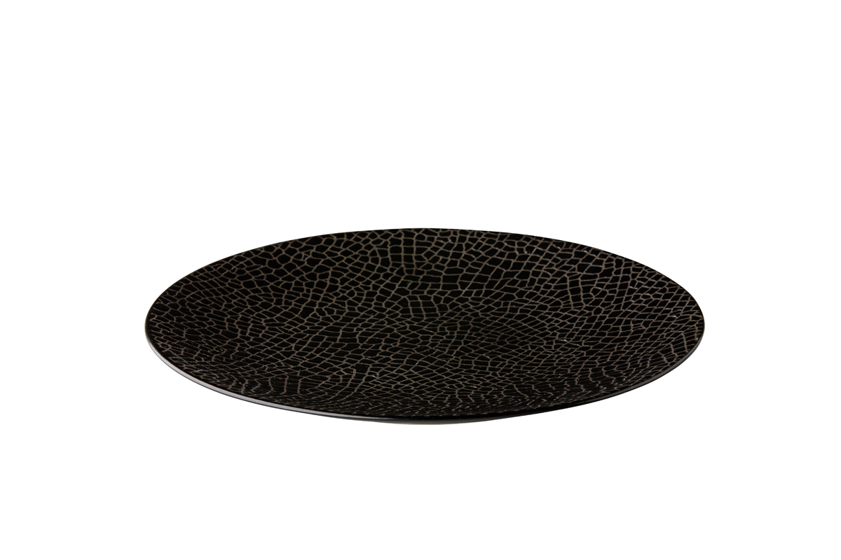 Het relief lijkt ingezet met zwarte steentjes, gevormd tot een MOZAIEK en is zeker een toevoeging voor uw gedekte tafel en een verrrassing voor uw gasten.