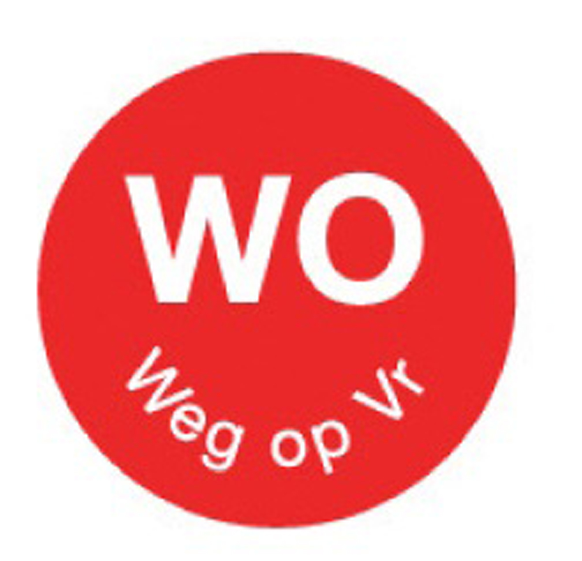 Permanente sticker 'wo weg op vr' 19 mm 1000/rol, 1 rol