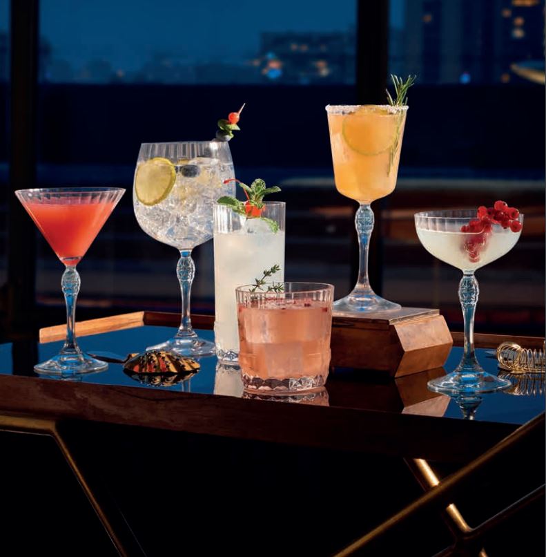 Alle producten worden gekenmerkt door een elegante en originele vintage stijl, in lijn met de laatste trends, en zijn verfraaid met dichte facetten die kostbare lichteffecten ontwikkelen en de kleuren van cocktails en drankjes versterken.