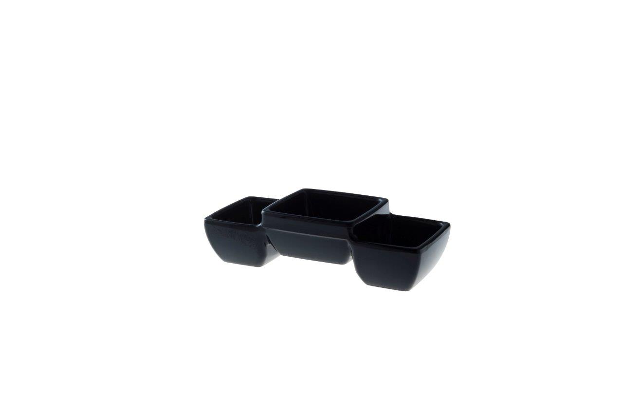 Schaal 14x6 cm rechthoekig met 3 vierkante bakjes zwart Mela, truyts, 6 stuks