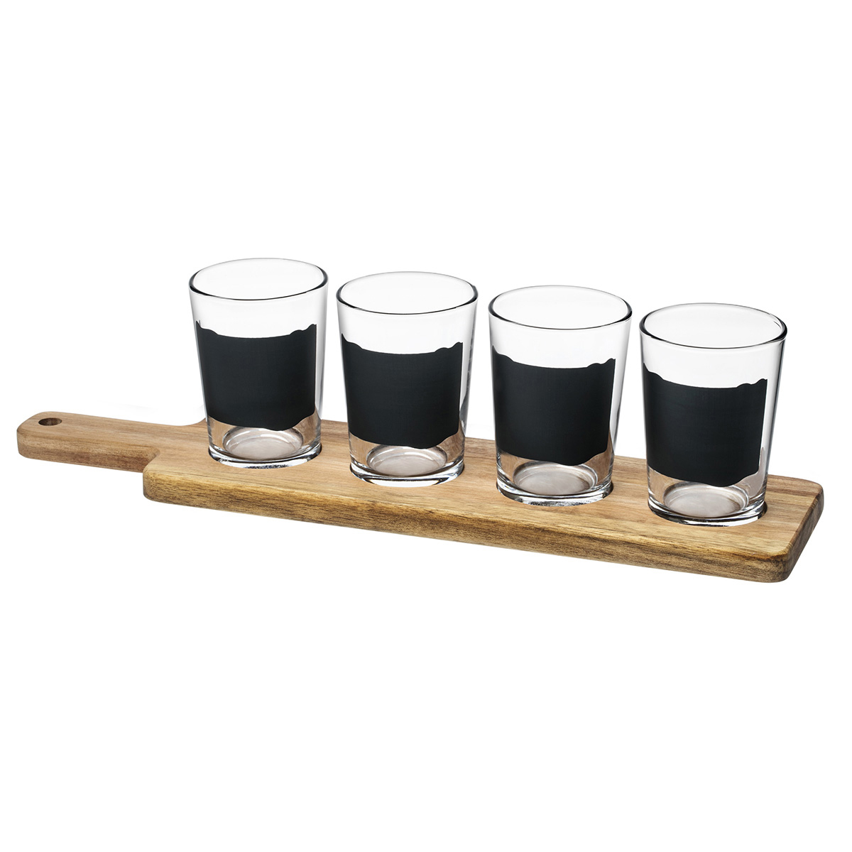 Glazen 4 stuks, set, op houten plateau, 1 stuks
