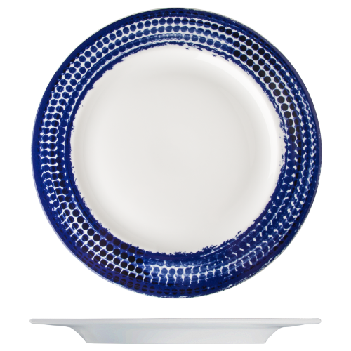 Bord isabelle points vlak 31 cm, rand, indigo blauw, suisse langenthal, 6 stuks.