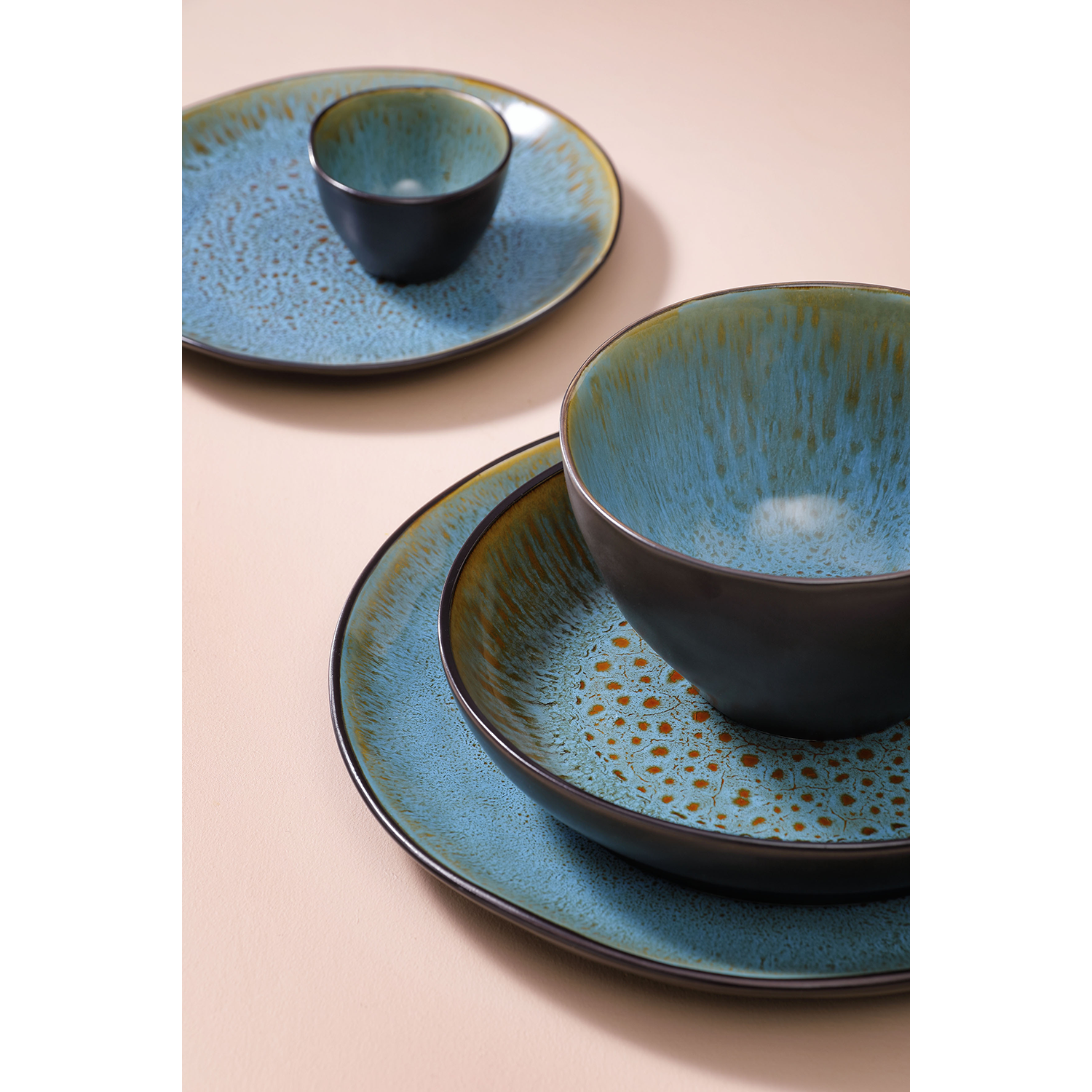 Palmer Bord Lotus 27.5 cm Turquoise Zwart Stoneware, 6 stuks