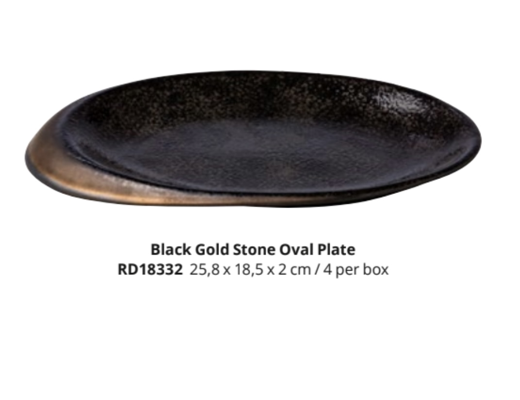 Oval plate Stone black/gold 25,8 x 18,5 x 2 cm, 4 stuks