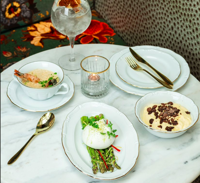 Mix met gouden bestek, presentatie materiaal of glaswerk met een gouden rand om de presentatie helemaal af te maken.