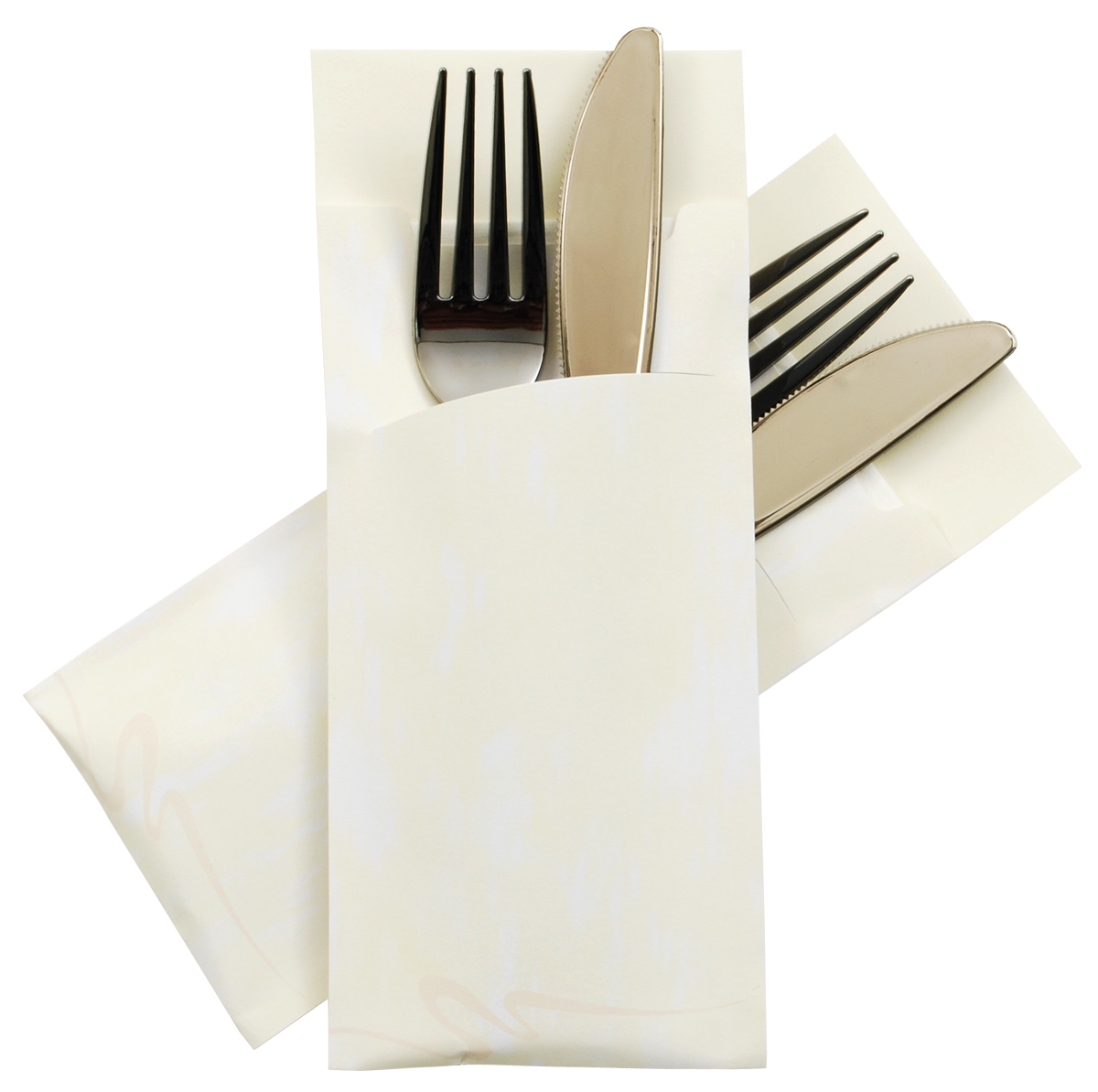Bestekzakje / pochetto, marble cream, servet wit, G2D, doos 520 stuks.