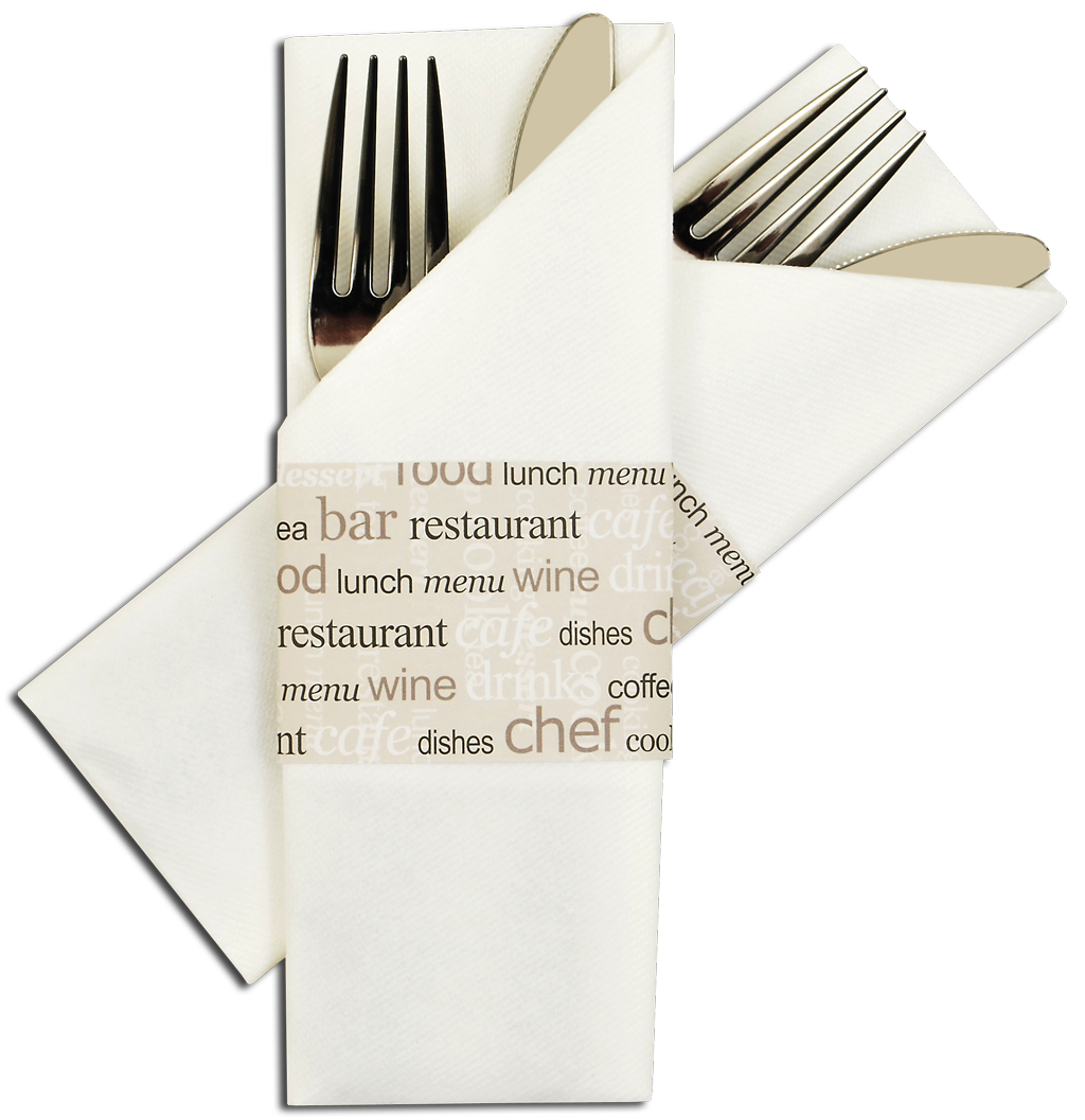 Napkin Sleeve, insteek servet met servet ring, servet wit, all about food, doos 300 stuks.
