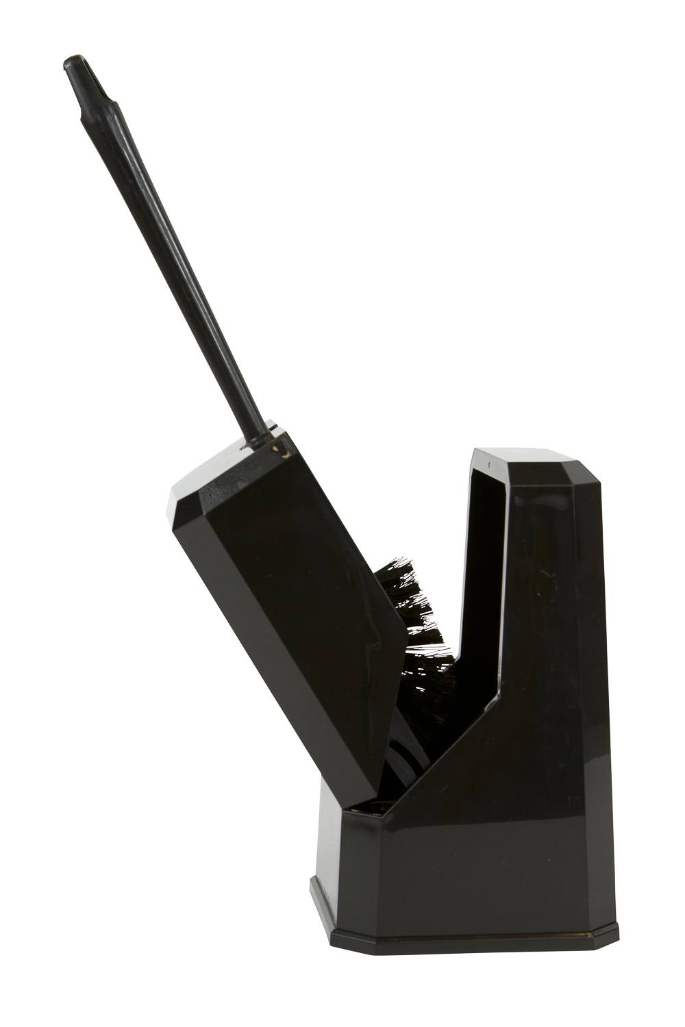 Toilet borstel houder, zwart kunststof, hygiënisch gesloten systeem.