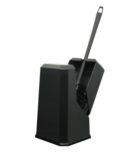 Toilet borstel houder, zwart kunststof, fraaie vormgeving, hygiënisch gesloten systeem.