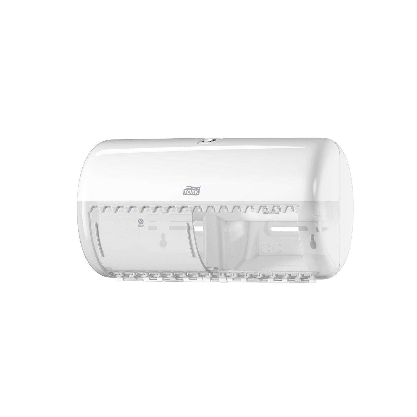 In de Tork Conventional Toilet Roll dispenser passen twee traditionele toiletrollen.