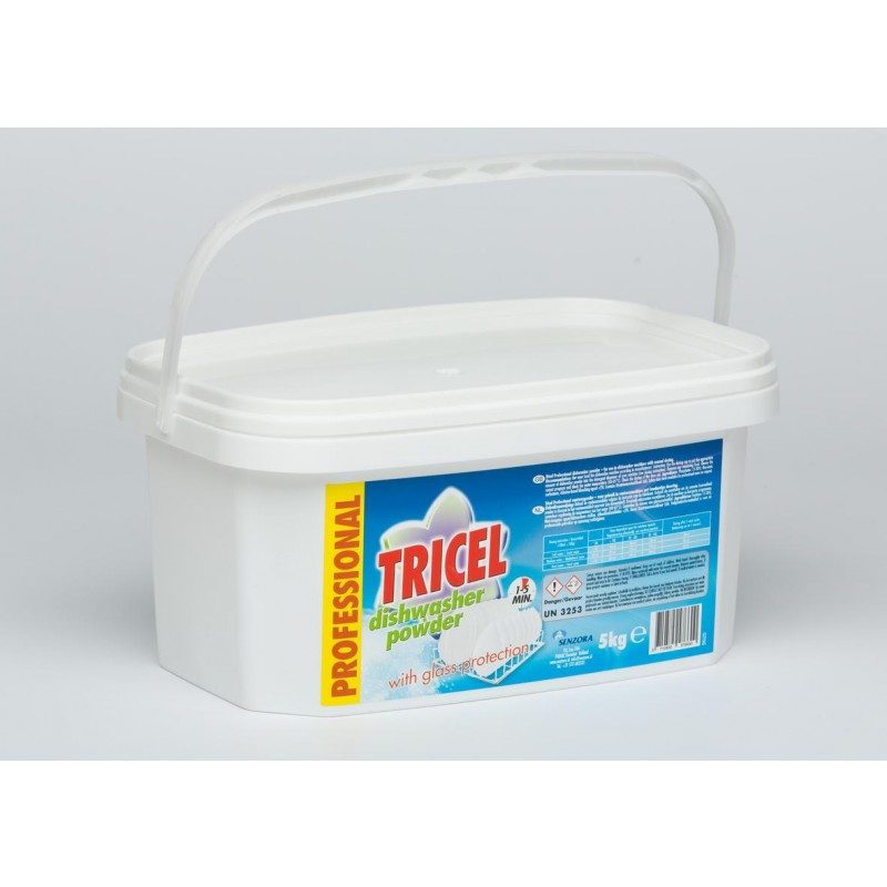 Vaatwasmiddel, tricel proffesional, poeder, emmer afsluitbaar 5 Kg.