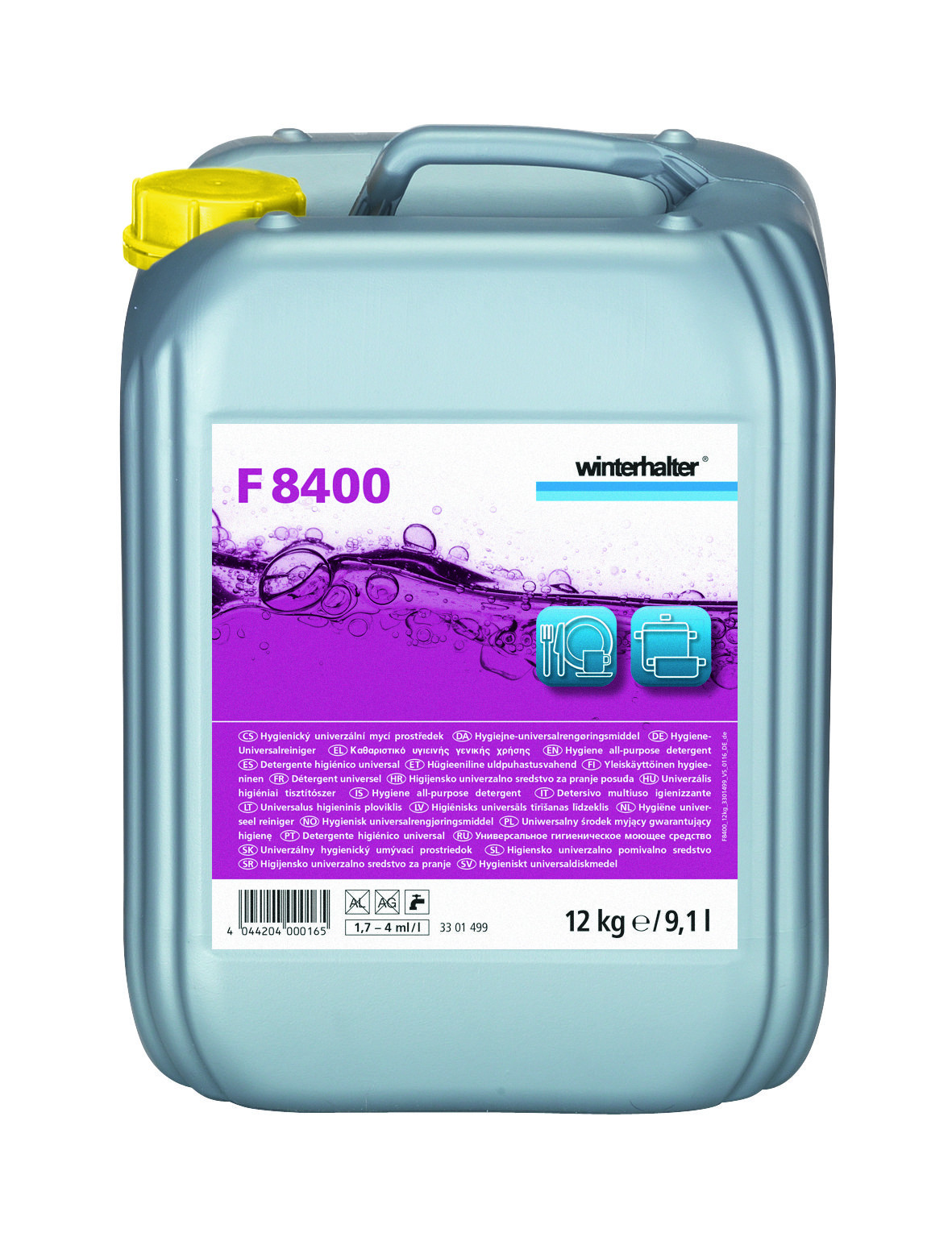 Winterhalter F8400, hygiëne universeel reiniger, Vloeibaar, hoogalkalisch, can 9,1 liter