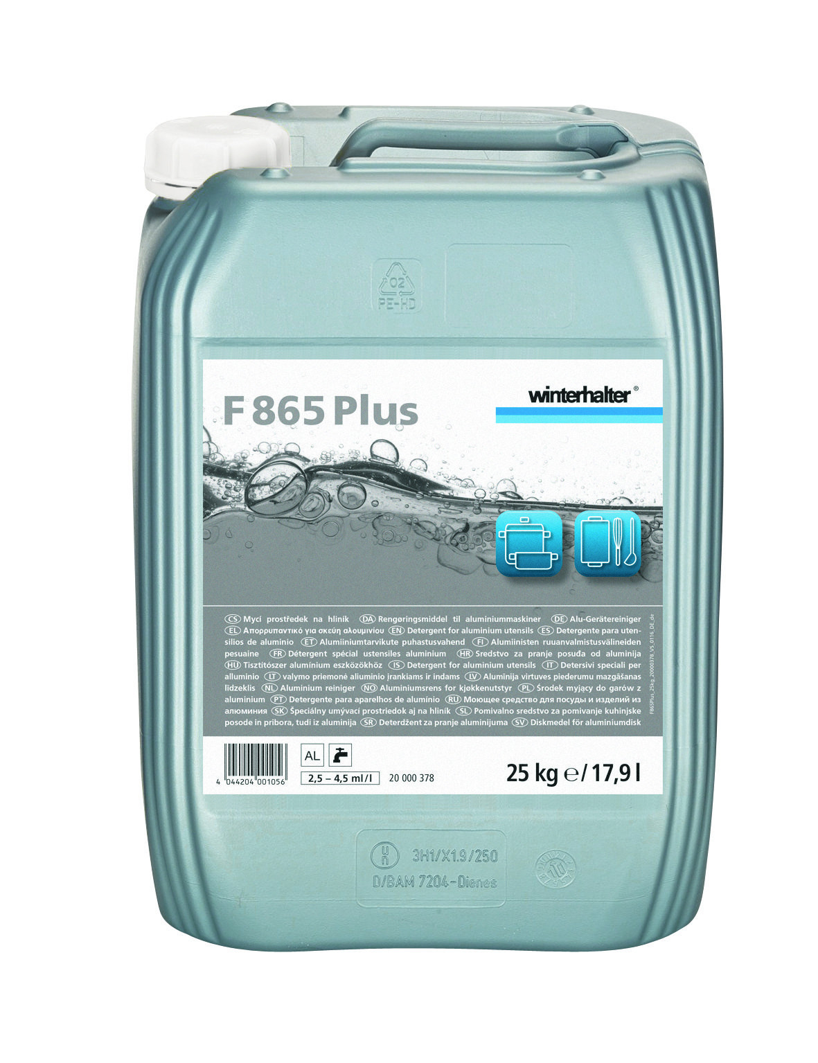 Winterhalter F 865 plus, aluminium gereedschappen reiniger, vloeibaar, schuimremmend, aluminiumveilig reinigingsmiddel voor gereedschappenwasmachines, can 25 kg.